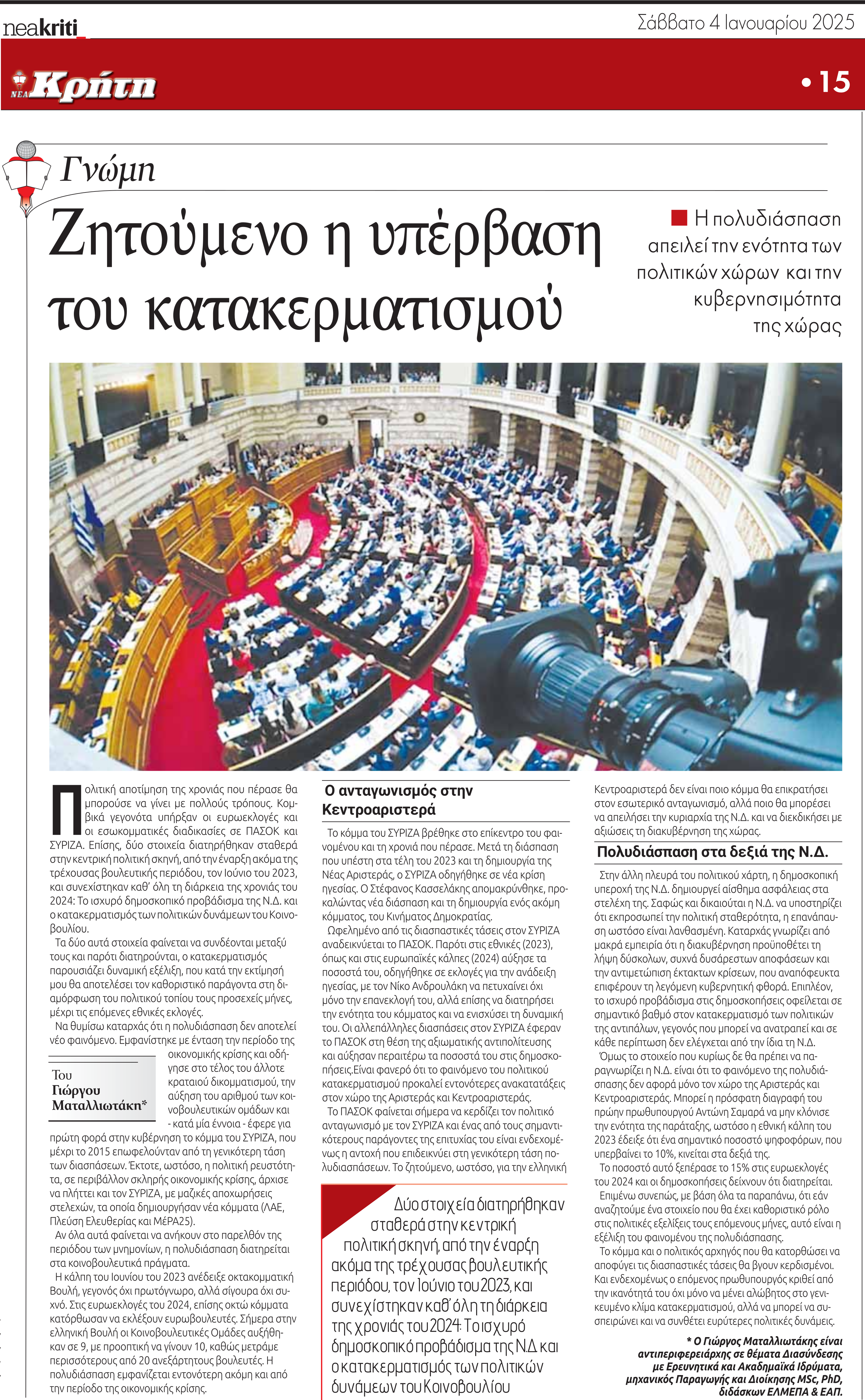 Ζητούμενο η υπέρβαση του κατακερματισμού